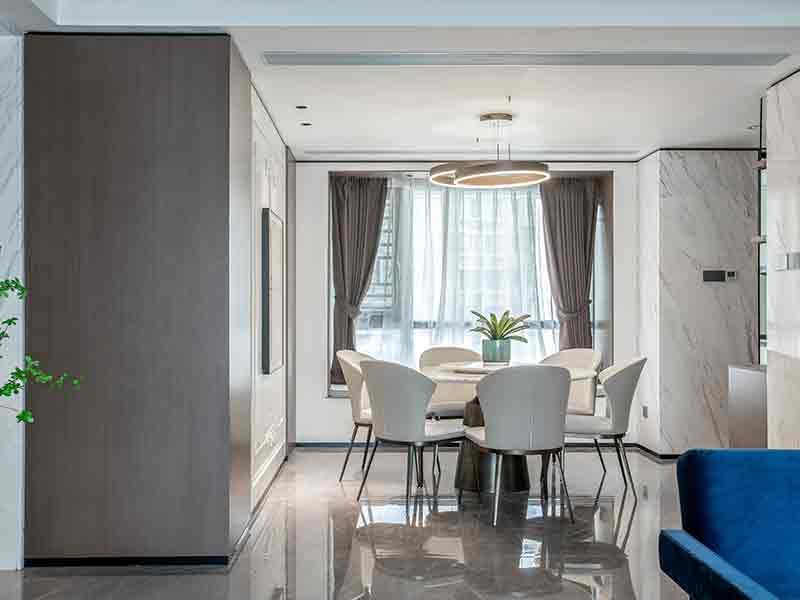 設(shè)計師在傳統(tǒng)法式的基礎(chǔ)上衍生出有新法式面貌的風(fēng)格,在保留法式的傳統(tǒng)裝飾圓度下做簡化處理,形態(tài)簡約而不失奢華,打造利落率性的氣質(zhì),呈現(xiàn)出時尚與奢華的空間。
